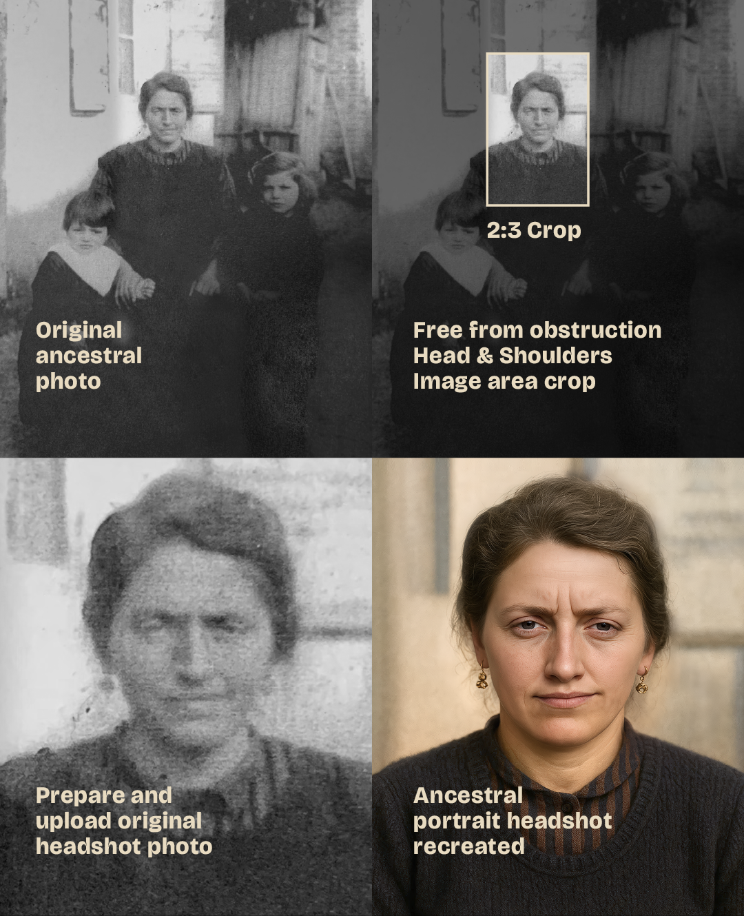 Select an original portrait image which best showcases the full head and shoulders area of your desired ancestor without any obstructions and with their faces looking towards you.